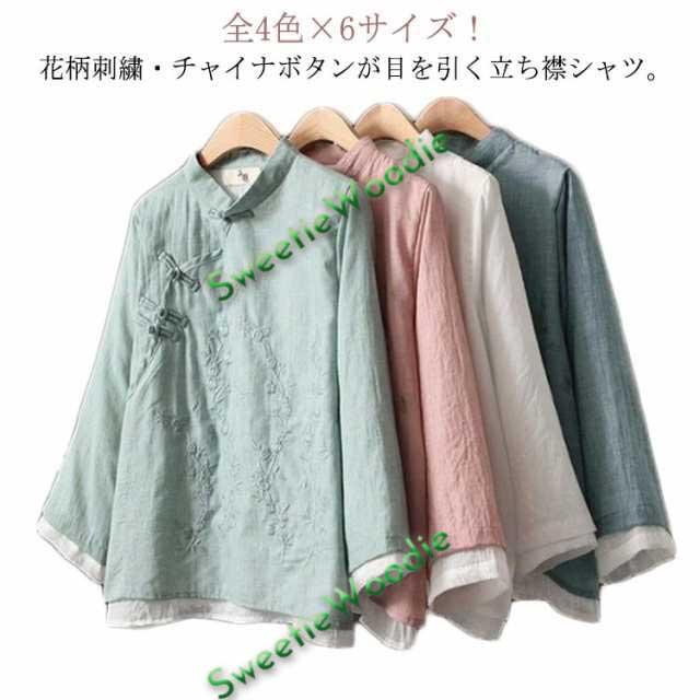 全4色×6サイズ!チャイナブラウス 刺繍ブラウス 送料無料 綿麻 春シャツ 花柄 刺繍 ブラウス レディース リネンブラウス チャイナ風 トップス チャイナカラー 立ち襟 麻 綿 薄手 長袖 チャイナシャツ レイヤード ゆったり ナチュラル 大人 カジュアル 春 秋