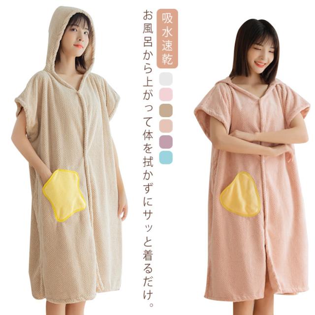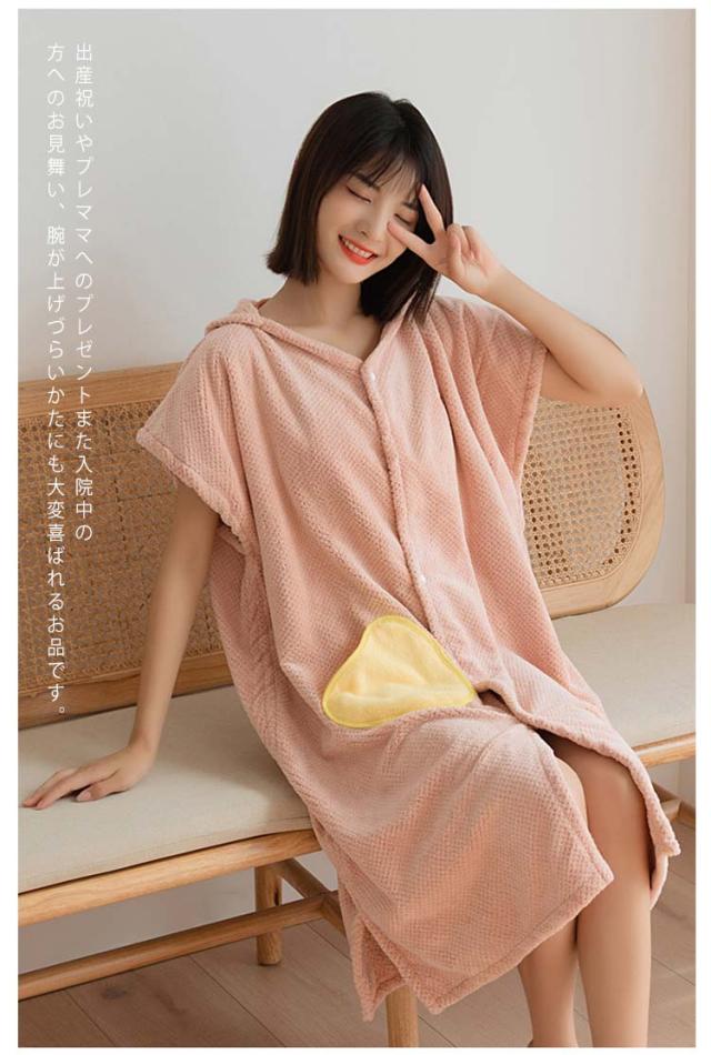着るバスローブ 着るバスタオル バスローブ ポンチョ バスローブ レディース タオル生地 ママ 吸水 フード付き 前開き 吸水速乾 軽い ギフト プレゼント 贈り物 バスタオル 半袖 膝丈 ナイトガウン 寝巻き パジャマ 寝間着 ルームウエア ふわふわ 送料無料