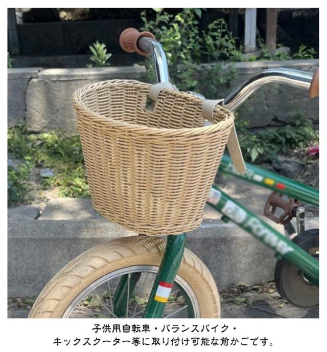 前掛けカゴ 前かご キックスクーター 前カゴ 前かご 自転車 キッズ ラタンバスケット 子供用 バランスバイク キックバイク キックボード フロントバスケット バスケット 編み上げ ラタン 装着簡単 バックルバスケット ナチュラル 送料無料