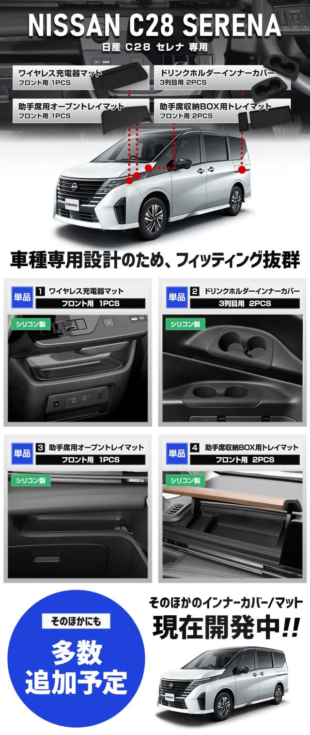 [対象商品タイムセール10%OFF]セレナ C28 専用 プロテクティブカバー&マット フルセット SERENA 保護 傷防止 内装 ドアポケット ワイヤレス充電器 NISSAN 日産 [2]