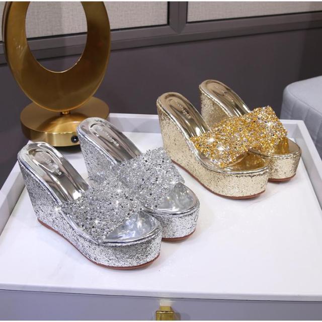 サンダル ウェッジソール レディース 厚底サンダル ウェッジソールサンダル レトロ ミュール ハイヒール キラキラ 美脚 サマーサンダル 厚底