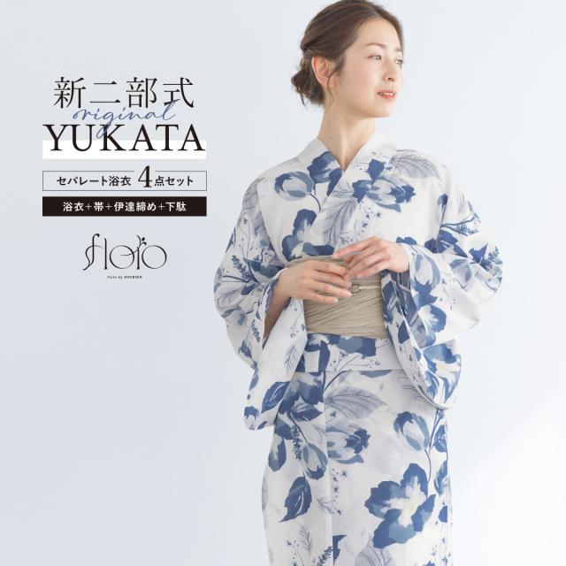 SOUBIENのプライベートブランド『floro by SOUBIEN』(フローロ)の女性用セパレート浴衣4点セットです。