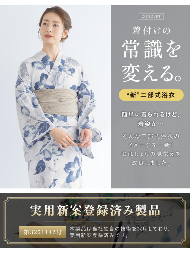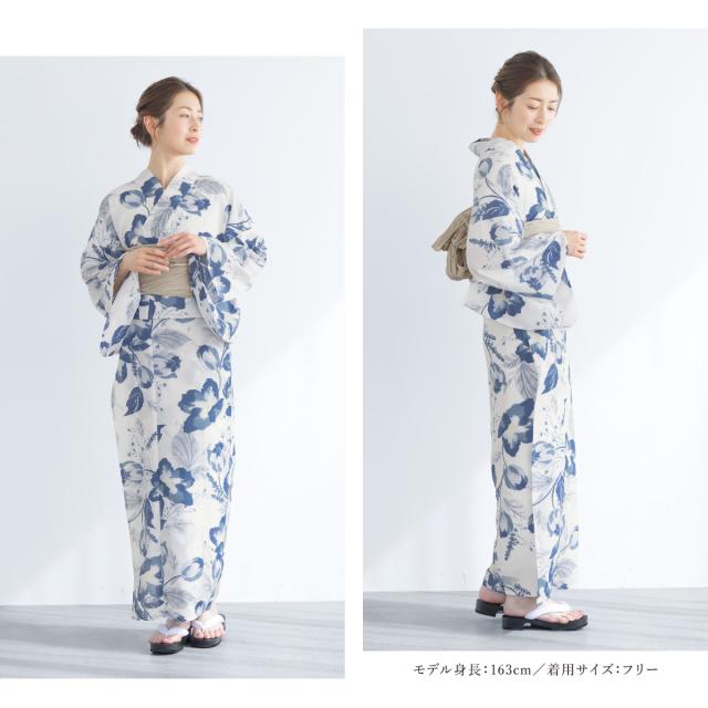浴衣 セット レディース 二部式 セパレート 浴衣セット 兵児帯 2025新作 floro 簡単 悩まない 涼しい 白 青 紺 グレージュ 吸水速乾 大人 おしゃれ 下駄 フリー 送料無料
