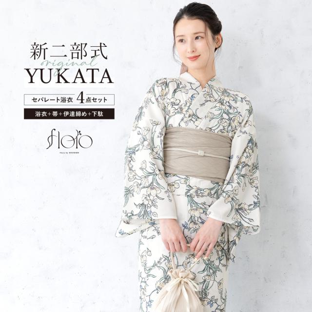 SOUBIENのプライベートブランド『floro by SOUBIEN』(フローロ)の女性用セパレート浴衣4点セットです。
