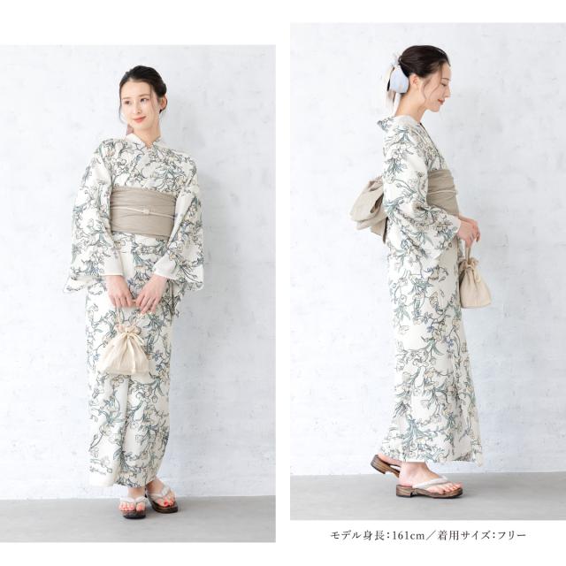 浴衣 セット レディース 二部式 セパレート 浴衣セット 兵児帯 2025新作 floro 簡単 悩まない 涼しい 白 緑 ベージュ 花柄 吸水速乾 大人 おしゃれ 下駄 フリー 送料無料