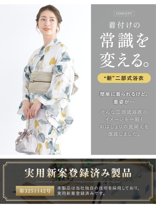 巻きスカートに浴衣型の上着を羽織ることで浴衣に見える二部式の浴衣です。