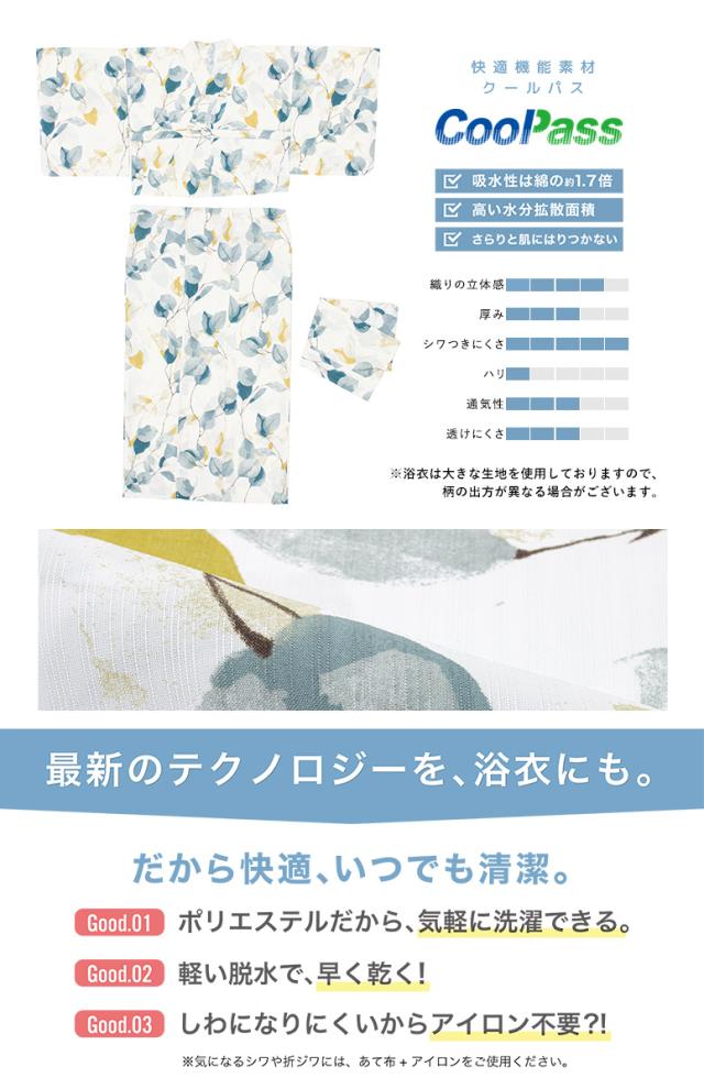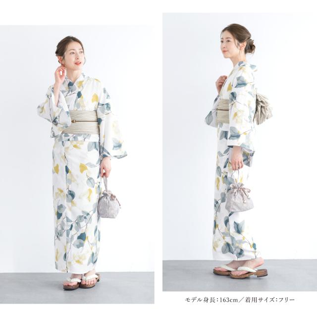 浴衣 セット レディース 二部式 セパレート 浴衣セット 兵児帯 2025新作 floro 簡単 悩まない 涼しい 白 グレージュ 葉 リーフ 吸水速乾 大人 おしゃれ 下駄 フリー 送料無料