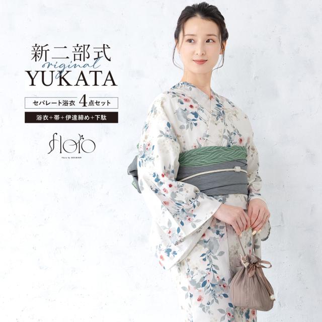 SOUBIENのプライベートブランド『floro by SOUBIEN』(フローロ)の女性用セパレート浴衣4点セットです。