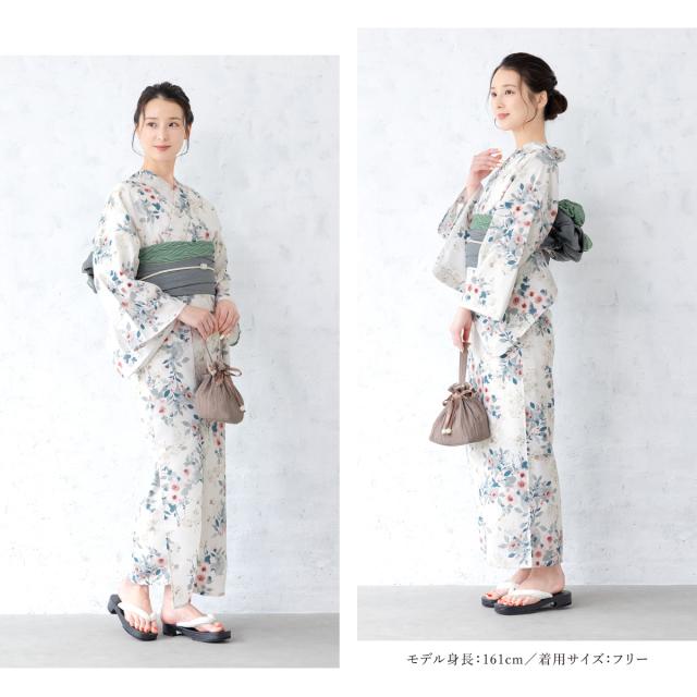 浴衣 セット レディース 二部式 セパレート 浴衣セット 兵児帯 2025新作 floro 簡単 悩まない 涼しい 白 ピンク グレー 花柄 吸水速乾 大人 おしゃれ 下駄 フリー 送料無料