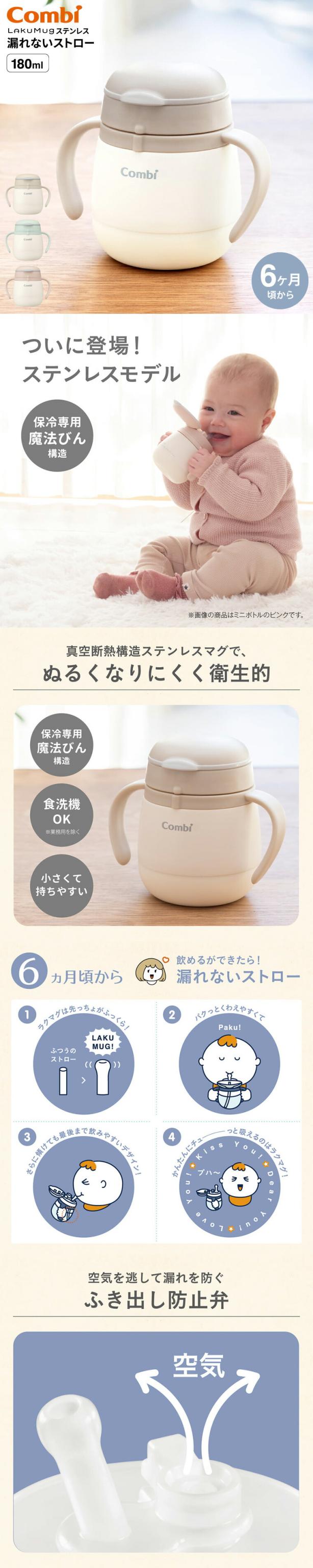 Combi コンビ ラクマグ ステンレス 漏れないストロー mini 魔法瓶 保冷専用 贈り物 赤ちゃん ベビー 離乳食 食器 ベビー食器 お食い初め プレゼント 練習 育児 食洗器対応 誕生日 ベビー用品
