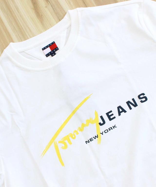 TOMMY JEANSのシグネチャーロゴでアクセントを効かせたアイコンTシャツ。
