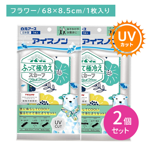 【2個セット】アイスノンふって極冷えスカーフ フラワー 冷たい 涼しい ひんやり 冷感 クール 暑さ対策 熱中症予防 繰り返し 持続 長持ち UVカット 屋外 外仕事 スポーツ レジャー アウトドア 白元アース