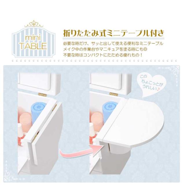 メイクボックス 三面鏡がついた大容量のコスメボックス ミニテーブル付き