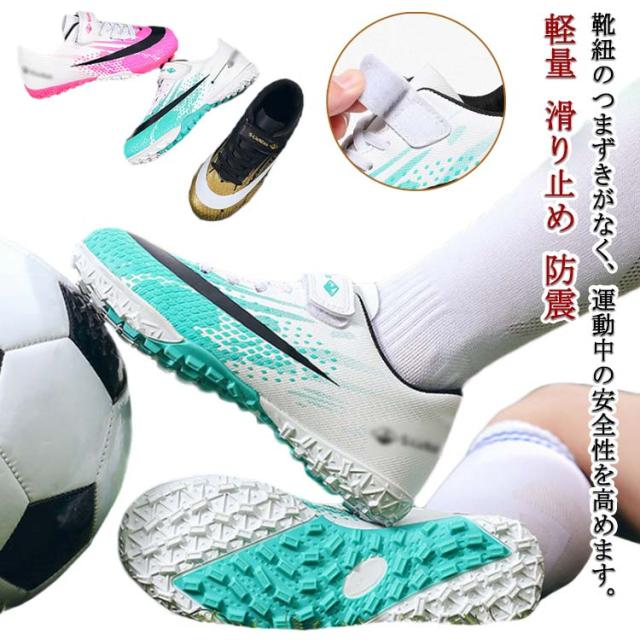 キッズ 大人 ジュニア 軽量 スニーカー サッカーシューズ スパイクシューズ 結ばない靴ひも マジックテープ メンズ 運動靴 防震 トレーニングシューズ レディース スポーツ サッカーシューズ 防滑 ジュニア用 滑り止め 靴 くつ 子ども 子供 フットボール 練習 部活