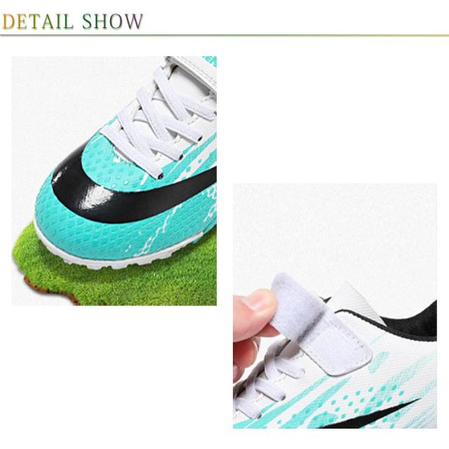 | 靴紐のつまずきがなく、運動中の安全性を高めます。 小さな子供でも自分で履き脱ぎラクラクのマジックテープ式サッカーシューズ。 滑らかな合成皮革、耐摩耗性と防水性があり、防滑や防震機能付きの優れたクッション性もあり、雨の日にも楽に運動できます。 踵部分には保護設計を採用し、足をしっかりと保護。かかと部分は自然な動きをサポートするデザインで足のサポート、固定、保護により、運動中により積極的に動き始めます 屋内および屋外のあらゆるフットボール競技場、土や自然の芝生での使用に適しており、人工芝にも適しています。 | |