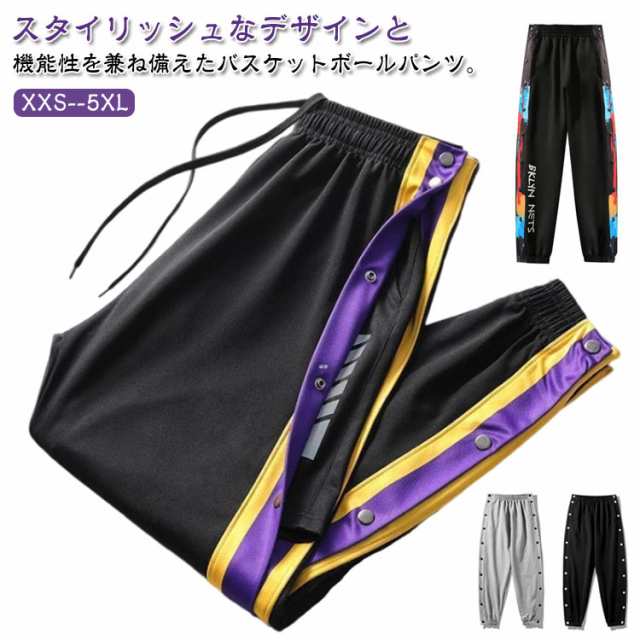 バスケット トレーニングウェア パンツ バスケパンツ バスケットボールパンツ バスパン バスケットパンツ ダンスパンツ 長ズボン ロングパンツ ジャージ 下 ジム スポーツウェア サイドボタン スナップボタン 裾ボタン ライン