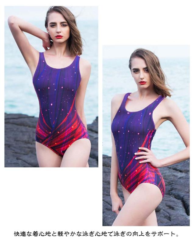 | シンプルでおしゃれ♪スタイル良く見えるフィットネス水着。 計算されたライン効果ですっきりほそ見え! カップは取り替えができる挿入カップ式です。 伸縮性がある素材を採用され、滑らかな肌触りがあり、締め付けず着心地いいです。 快適な着心地と軽やかな泳ぎ心地で泳ぎの向上をサポート。 | |