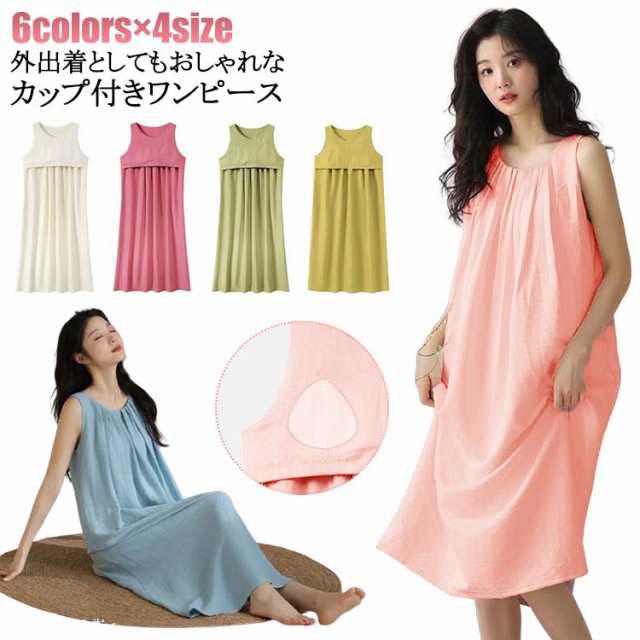タンクワンピース カップ付き パジャマ ワンピース レディース 夏 ルームウェア カップ付き パッド付き ノースリーブ ワンピース 大きいサイズ ナイトガウン 部屋着 かわいい ゆったり おしゃれ 可愛い 寝巻き ナイトウェア 女性 無地 シンプル おしゃれ