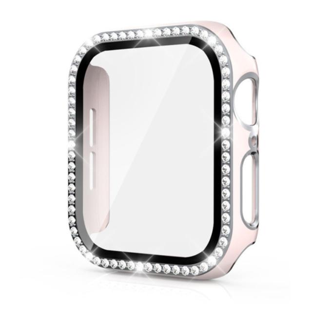 Apple Watch 用防水ケース series7/6/SE/5/4/3 アップルウォッチ 保護カバー ガラスフィルム 一体型 PC素材 全面保護 超薄型 装着簡単 耐衝撃 指紋防止 傷防止 キラキラ 可愛い 送料無料