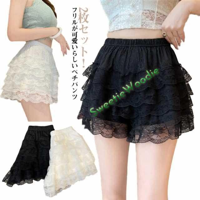 2枚セット 総レース スパッツ インナーパンツ ペチコート ペチパンツ ショート レース 見せパン レディース レースパンツ ボトムス ショートパンツ フリル フレア 部屋着 ドレス スカート 透け防止 パニエ レース シフォン キュロット コスプレ小物