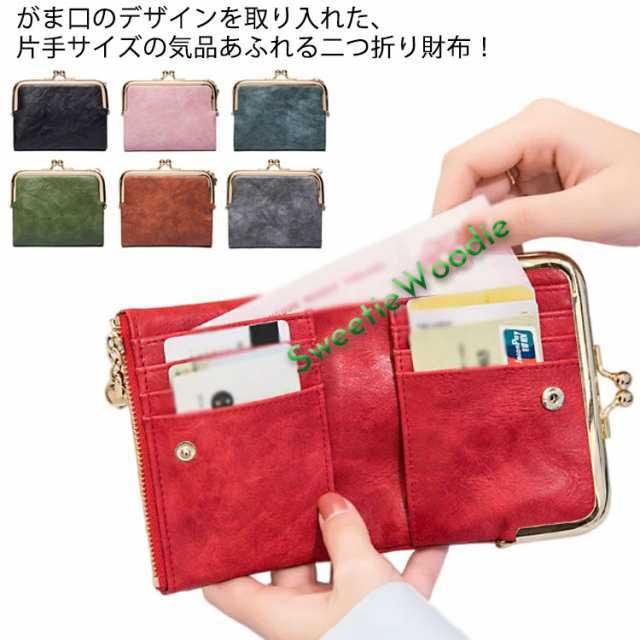 がま口 二つ折 がまぐち 送料無料 財布 レディース 2つ折り コンパクト 軽い 小銭入れ カード入れ お札入れ 小さめ 合皮 大容量 柔らか ミニ財布 折りたたみ 女子高生 小さめ