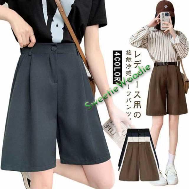 ハーフパンツ ワイドパンツ 韓国ファッション 接触冷感 スーツパンツ ポケット ゆったり ワイドショートパンツ ハイウエスト 夏用 無地 レディース 5分丈パンツ キュロット 短パン 大きいサイズ ウエストゴム 半ズボン 着痩せ ショーパン 春夏 薄手