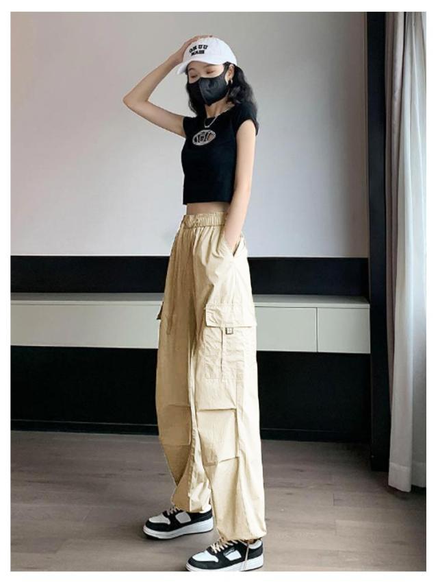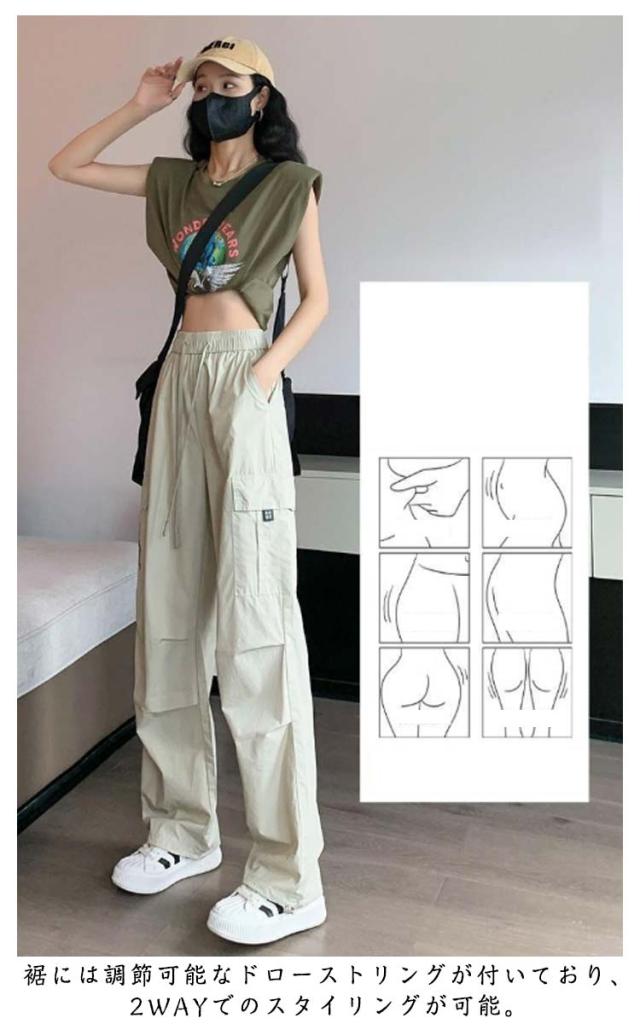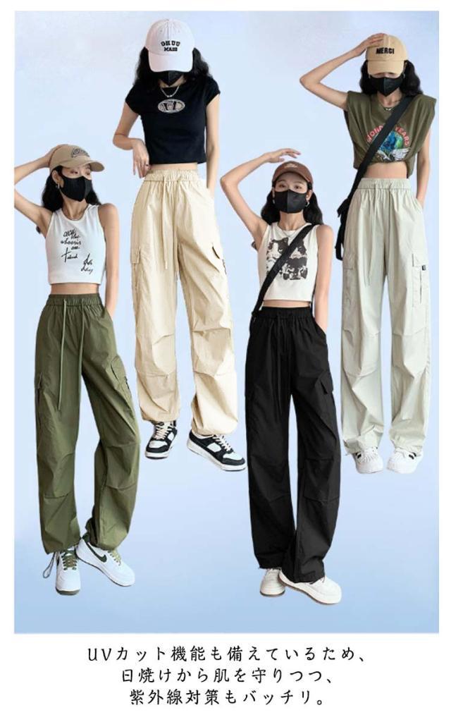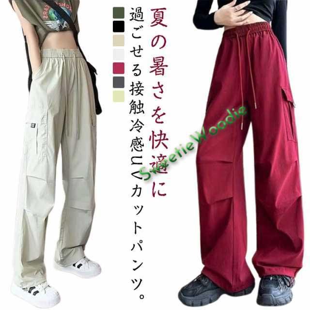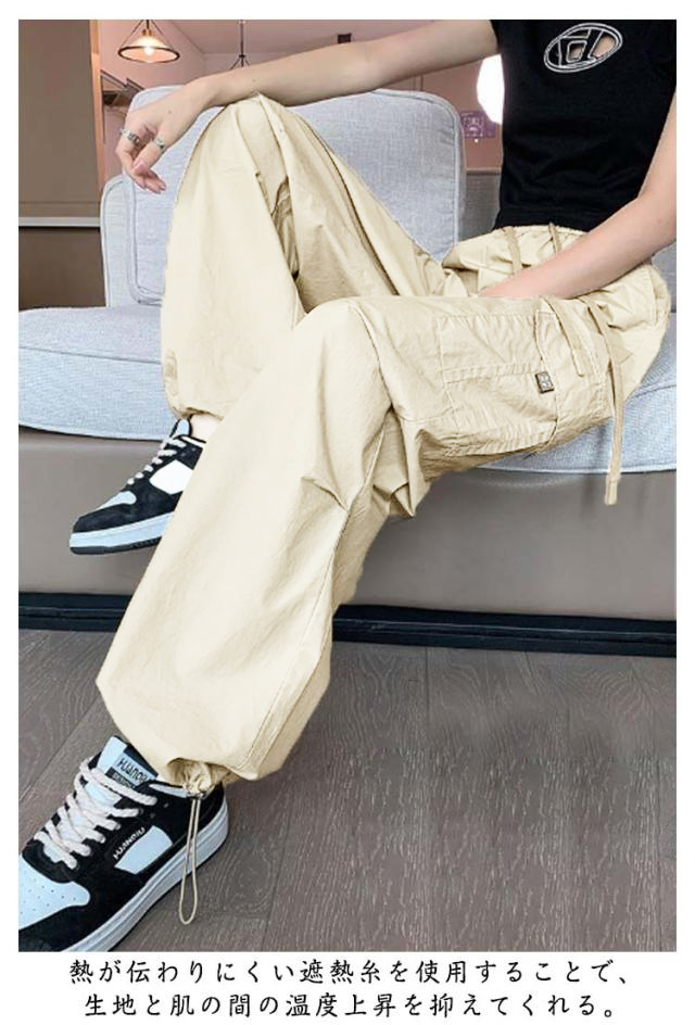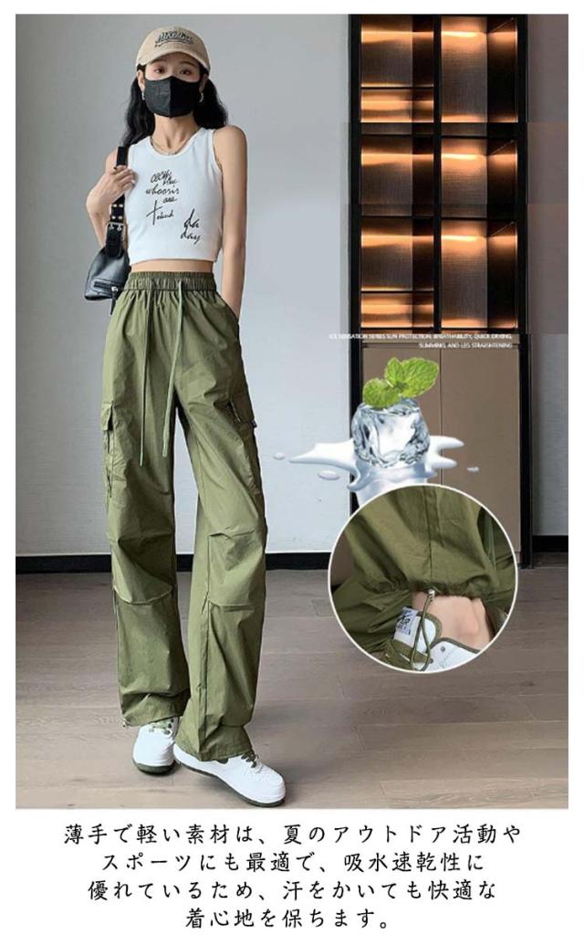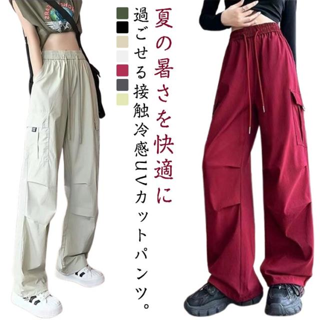 カーゴパンツ レディース 2way パラシュートパンツ UVカット 薄手 ミリタリーパンツ ひざタック 春夏 ダンス衣装 韓国風 ウエストゴム ストリート 紫外線対策 接触冷感 遮熱 軽い 涼しい