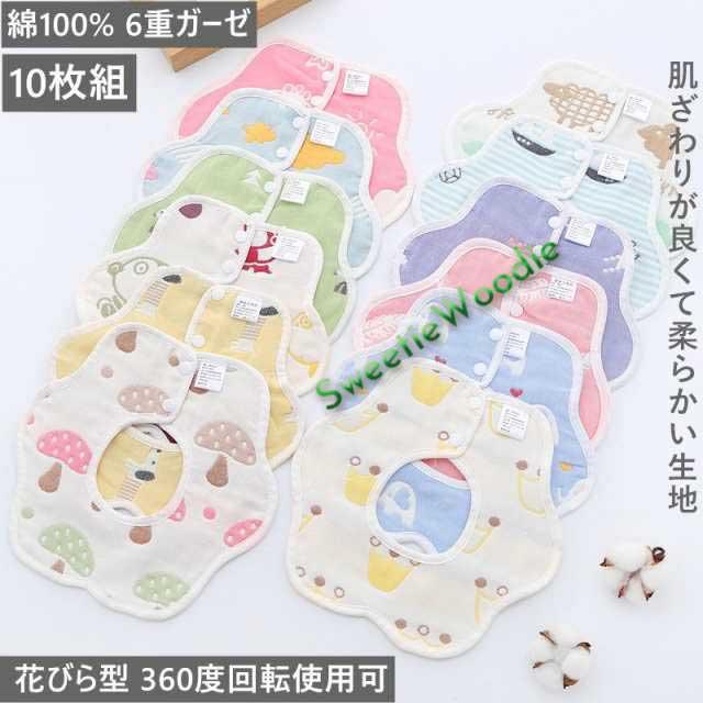 ベビー よだれかけ 10枚組 スタイ女の子 男の子 ビブ スタイ 食事エプロン 綿100% 6重ガーゼ 花びら型 360度回転 赤ちゃん 柔らかい 出産のお祝い ギフト