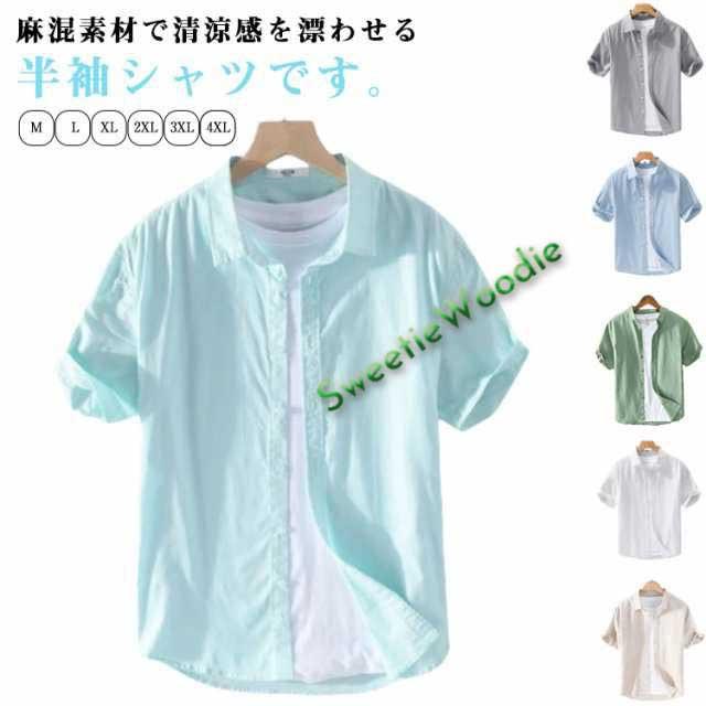 綿麻シャツ 半袖 メンズ リネンシャツ 開襟シャツ シャツ 半袖 春夏 カジュアル 通気 吸汗 シンプル 夏服 薄手 ブルー ホワイト ネイビー