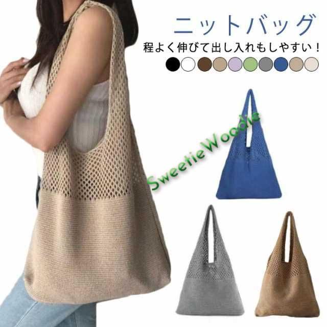 ニットトートバッグ かぎ編みバッグ ニットバッグ 夏 秋 春 トートバッグ かごバッグ ショルダーバッグ 編みバッグ ニット編み bag 軽量 透かし編み サマーバッグ あみバック 肩掛け 大人 お出かけ 折り畳み 折りたたみ