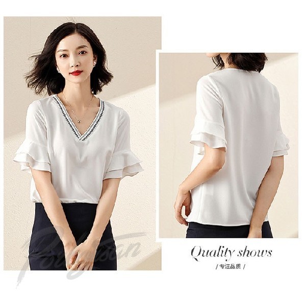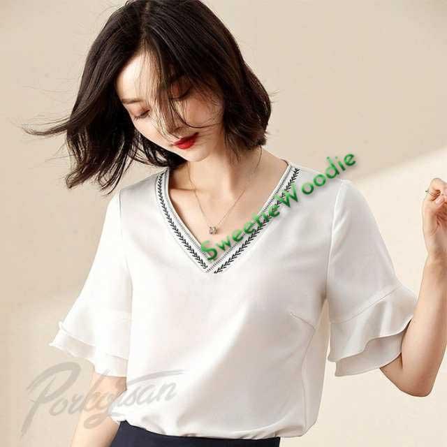 ブラウス レディース オフィス ブラウス 白 半袖 ブラウス フリル フォーマル ブラウス シフォンブラウス 大きいサイズ 無地 母の日