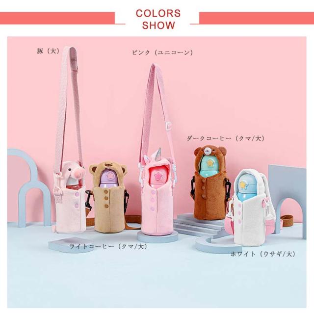 水筒カバー ペットボトルカバー ボトルカバー 可愛い 動物 もこもこ ショルダーストラップ ボトルケース 水筒ホルダー 水筒ケース 保冷 保温 500ml 350ml 肩掛け 持ち運び 子供 学校 小学生 遠足 クマ 豚 ウサギ 癒し グッズ レゼント 小物収納 ぬいぐるみ 送料無料