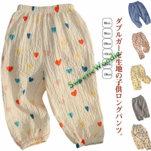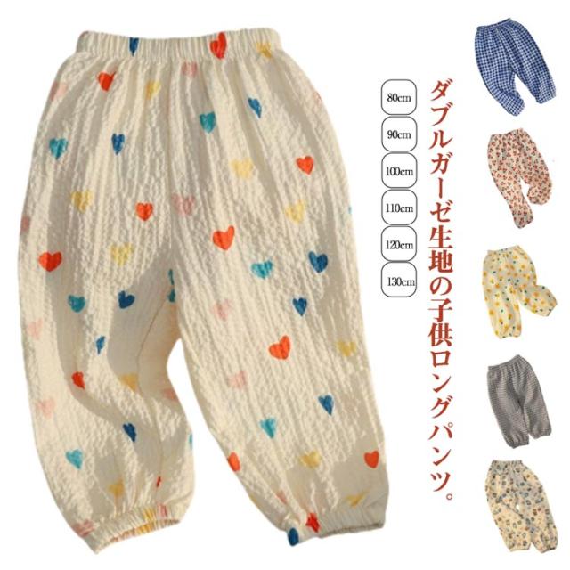 キッズ ダブルガーゼ ロングパンツ 虫除け 春夏 薄手 2重ガーゼ 子供服 ベビー 男の子 女の子 虫よけ 長ズボン 総柄 綿 コットン 日除け カジュアル ルームウェア 防蚊 おでかけ 通園 通学 シンプル 80 90 100 110 120 130cm 送料無料