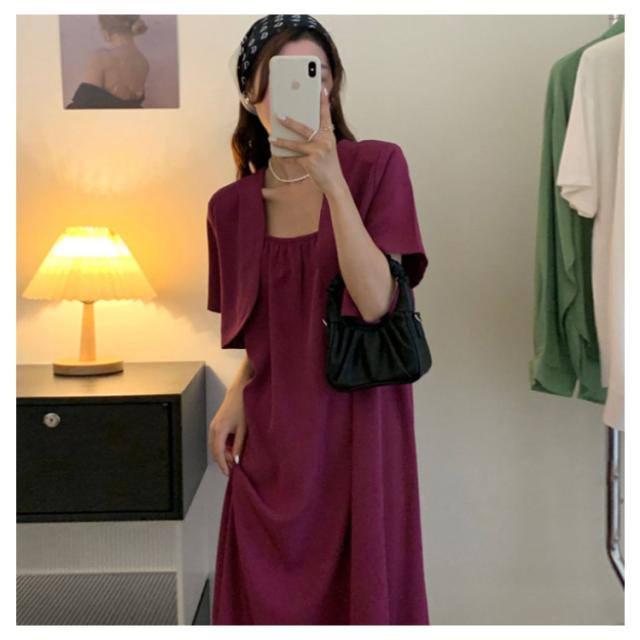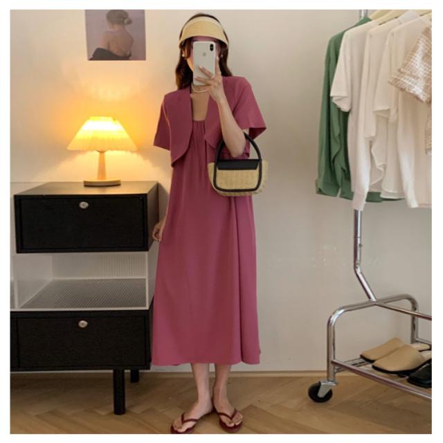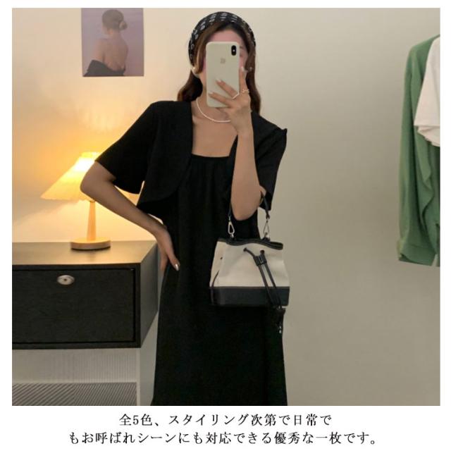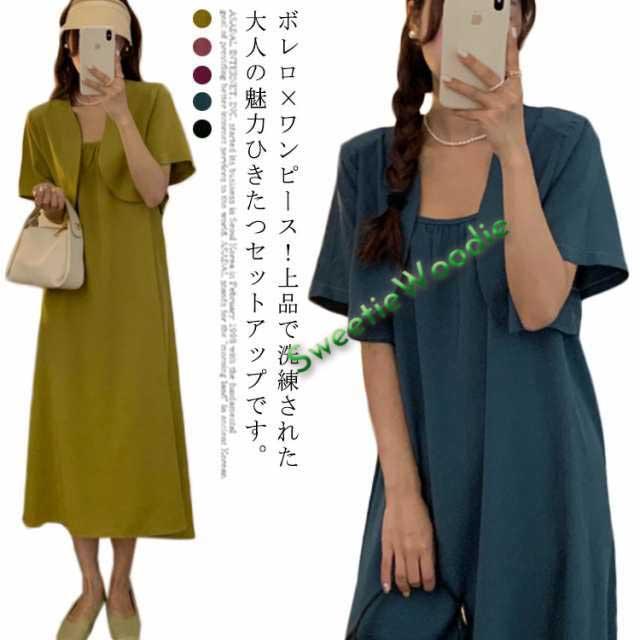 セットアップ ロングワンピース ミモレ丈 ワンピース ボレロ付き キャミソールワンピース キャミワンピ 韓国ファション M カジュアル 上品 デート S L ギャザー