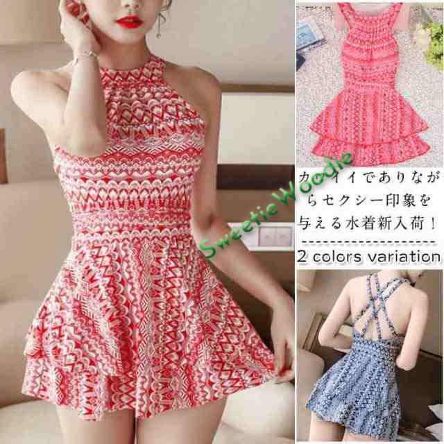 水着 ワンピース レディース ノンワイヤー 可愛い 大きいサイズ エスニック柄 20代 30代 大人 女性用 2018夏新作