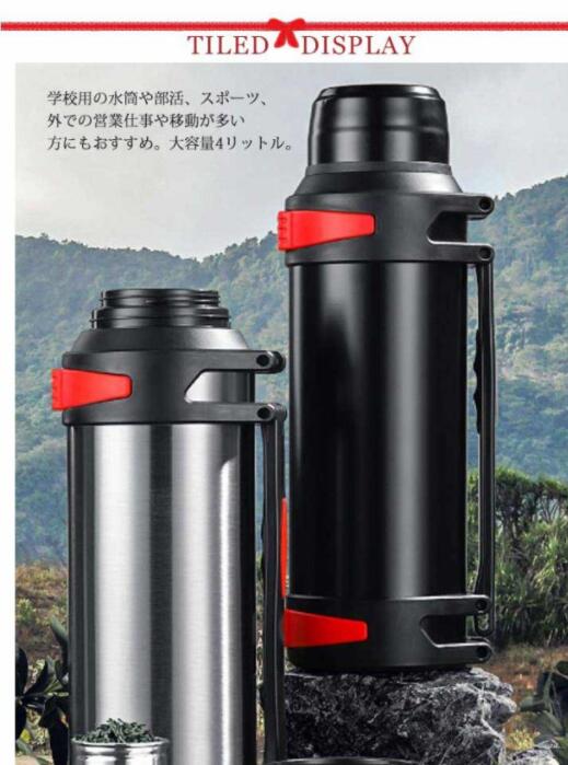 | スポーツ時などの水分補給に最適なボトルです。学校用の水筒や部活、スポーツ、外での営業仕事や移動が多い方にもおすすめ。大容量4リットル。 二重の断熱構造になっているため、保冷力と保温力に優れており、ドリンクの温度を長時間キープできます。 密閉性も高く、傾けたときに漏れにくいのもポイントです。 片手で開け閉めできるから、運動中に素早く水分補給したい時にもびったり。 肩から掛けられるストラップ付きで持ち運びに便利。 フィルター付き、 フィルター取り出しも可能。 | |