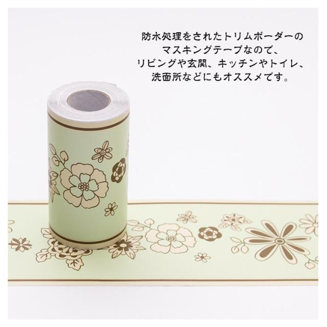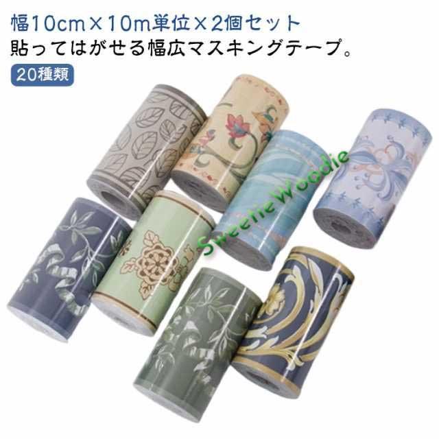 20種類 トリムボーダー 幅広 幅10cm 10m×2個セット マスキングテープ 貼ってはがせる リーフ 葉 花 欧式 バラ アンティーク インテリア 壁 床 キッチン トリム シール パネリング 羽目板 リメイクシート アクセントクロス 防水 透けない 壁紙シール 補修 DIY 自宅