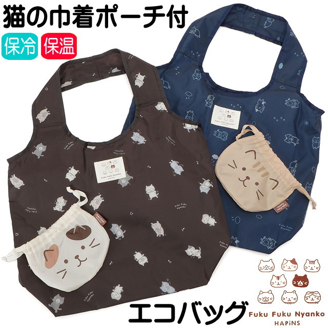 エコバッグ 巾着 ポーチ付き 袋付き 保冷 保温 折りたたみ 猫柄 軽量 便利 トートバッグ ショッピングバッグ ファスナー付 猫 ねこ ネコ 猫グッズ 女性 レディース かわいい おしゃれ ギフト プレゼント 猫好き 【 誕生日 】