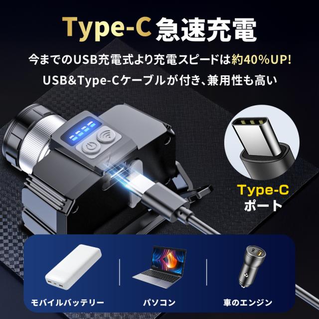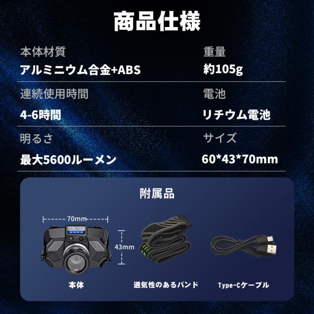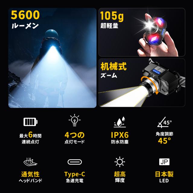 【期間限定 ポイント10倍】ヘッドライト LED 5600ルーメン 高輝度 ズーム調整可能 充電式 ランプ 軽量 防水 登山 釣り キャンプ アウトドア用 ランニング 夜間 明るい コンパクト Type-C LEDヘッドライト 長時間点灯 地震 停電 防災 災害対策 プレゼント