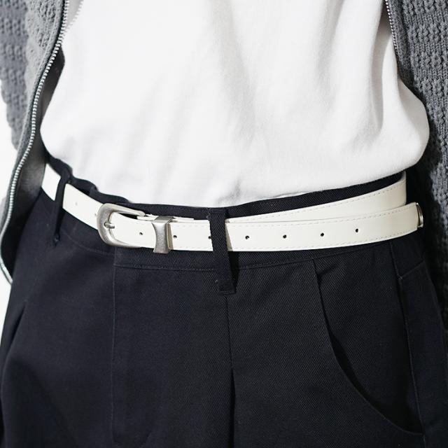 柔らかなPUレザーを使用した、しなやかな質感のナローベルト。