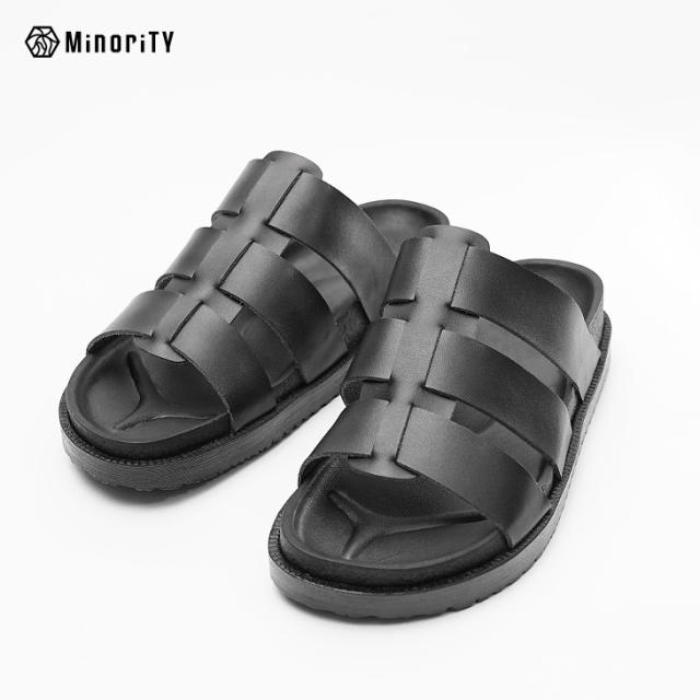 グルカサンダルのように足の甲を覆うデザインが特徴的なサンダル。