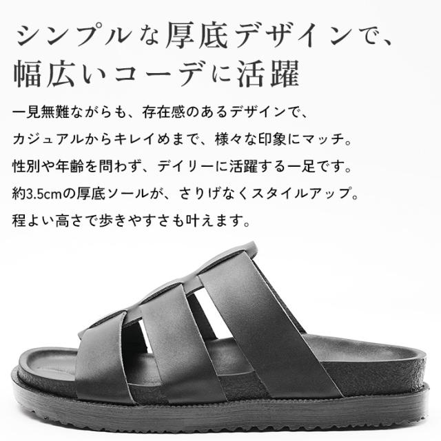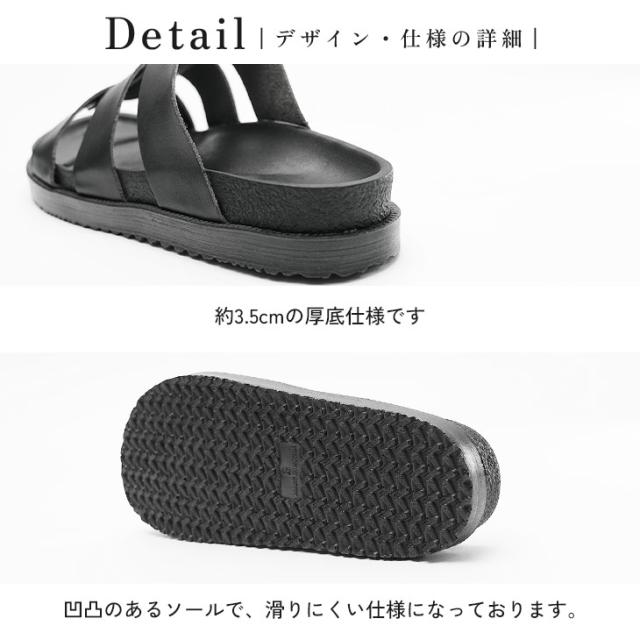 約3.5cmのソールとアッパーのデザインで楽に履けるのにお洒落見えが叶うアイテムに。ちょっとした外出から街中へのお出かけまで幅広く活躍するサンダルです。