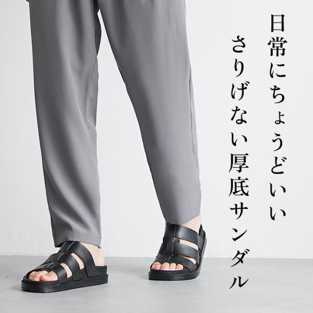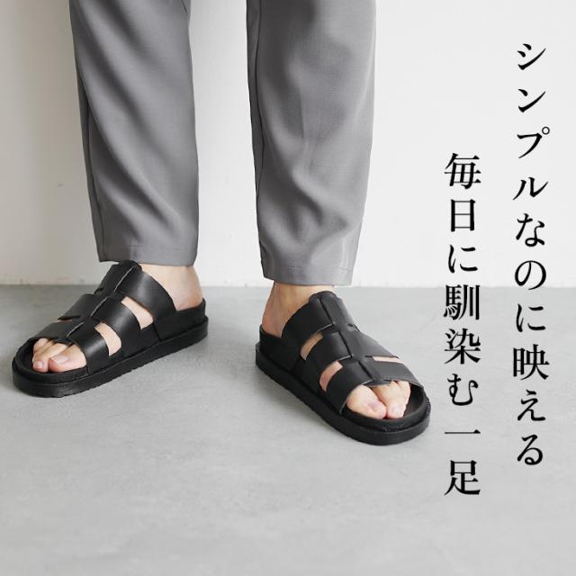 「日常になじむ、洒落サンダル」グルカサンダルのように足の甲を覆うデザインが特徴的なサンダル。