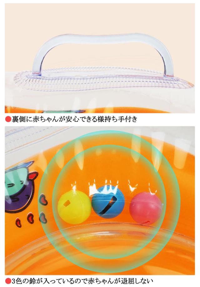 | ●お風呂でもプールでも使える赤ちゃん用の浮き輪です! ●プレスイミングの第一ステップに最適 ●水慣れに ●運動能力やバランス感覚の発達促進に ●夜泣き対策に ●赤ちゃんとのお風呂をより楽い時間に ●赤ちゃんが舐めても安全な素材を使用 ●裏側に赤ちゃんが安心できる様持ち手付き ●空気入れ部分は逆止弁で万が一蓋が外れても大丈夫 ●上下2本のベルトで赤ちゃんをしっかり固定 ●3色の鈴が入っているので赤ちゃんが退屈しない | |