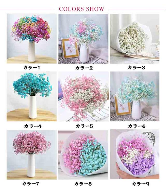 | ミックスカラーのかすみ草の花束です。【単色もあります】【2束セット】 ドライフラワーなので、水、肥料やりや世話不要で、同時に害虫のつく心配が要りません。 花びらも葉も鮮明な色で、遠目から見れば、まるで生花のように生き生き咲いています。 ご家庭からオフイス、ショップ、レストランの店内装飾等、様々な場所にお洒落な空間を演出、とてもおしゃれな造花です。 お気に入りの花瓶やブリキのポットに挿すだけで素敵なインテリアフラワーに。 | |