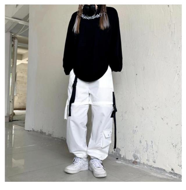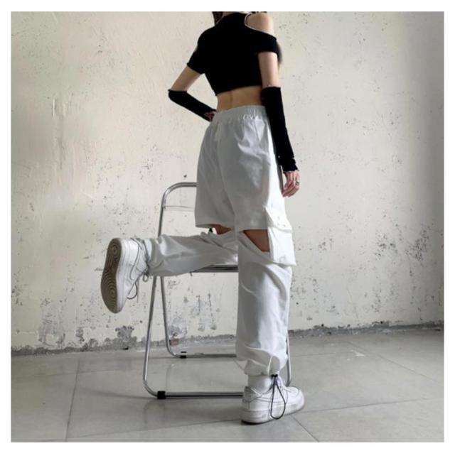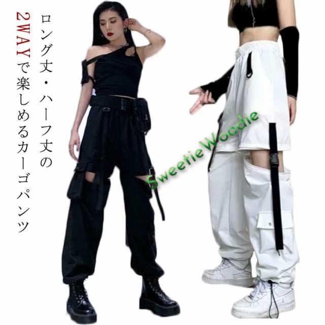 2WAY カーゴパンツ ダンスパンツ レディース ロングパンツ ショートパンツ カッコイイ 取り外し可 ダンス衣装 団体服 イベント 原宿系 ストリート 白 ロング丈 大きいサイズ 美脚 着?せ 演出服 ホワイト 送料無料 ポケット付き