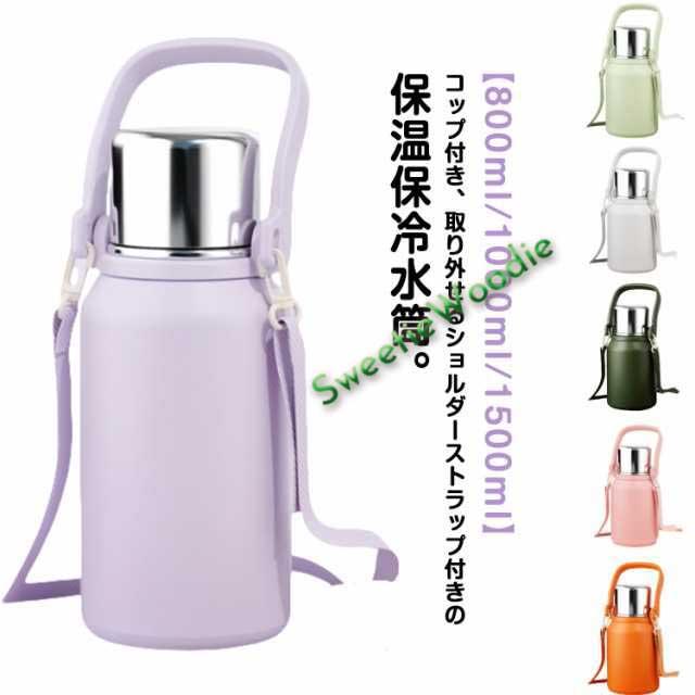 魔法瓶 大人用 水筒 800ml おしゃれ 大容量 保冷 マグボトル 付き 1.5L キッズ 大人 真空断熱 ボトル コップ付き 持ち手 ストラップ 1L 茶こし付き 軽量 水筒 真空ボトル ステンレス 水筒 1リットル 子ども用 大容量 800ml 1000ml 1500ml ギフト プレゼント