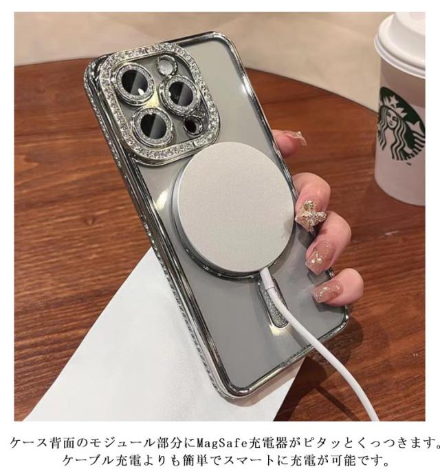 | MagSafe対応! きらきら光るクリアiPhoneケース カメラ周り、フレームなどにラメとラインストーンを使ったお洒落なデザインです。 ケース背面のモジュール部分にMagSafe充電器がピタッとくっつきます。ケーブル充電よりも簡単でスマートに充電が可能です。 耐衝撃・耐久性に優れたTPU素材を使用。柔らかい素材なので着脱がしやすい。 | |