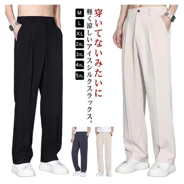 スラックス パンツ メンズ 大きいサイズ メンズ ワイドパンツ 接触冷感 薄手 夏 吸水速乾 涼しい 無地 チノパン 清涼 アイスシルクパンツ ズボン スラックス 伸縮性なし ロングパンツ 軽量 涼感 通気 ストレートパンツ 送料無料 父の日