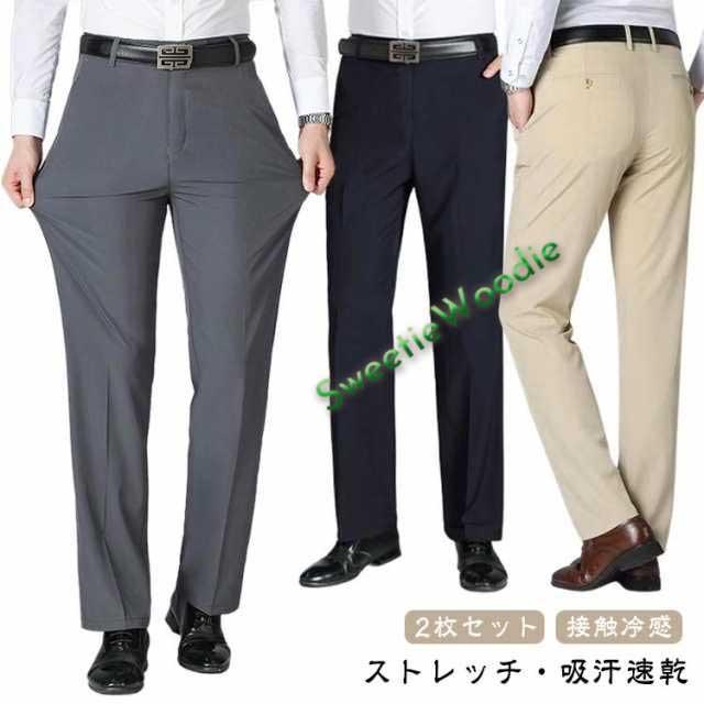 夏 春 メンズ スラックス メンズ 細身 ストレッチ スラックス ビジネス 大きいサイズ スリム 2枚セット スラックス パンツ 冷感 夏 接触冷感 スラックス アイスシルクパンツ 冷感パンツ メンズ ストレッチ 吸水速乾 無地 軽量 薄手 通気